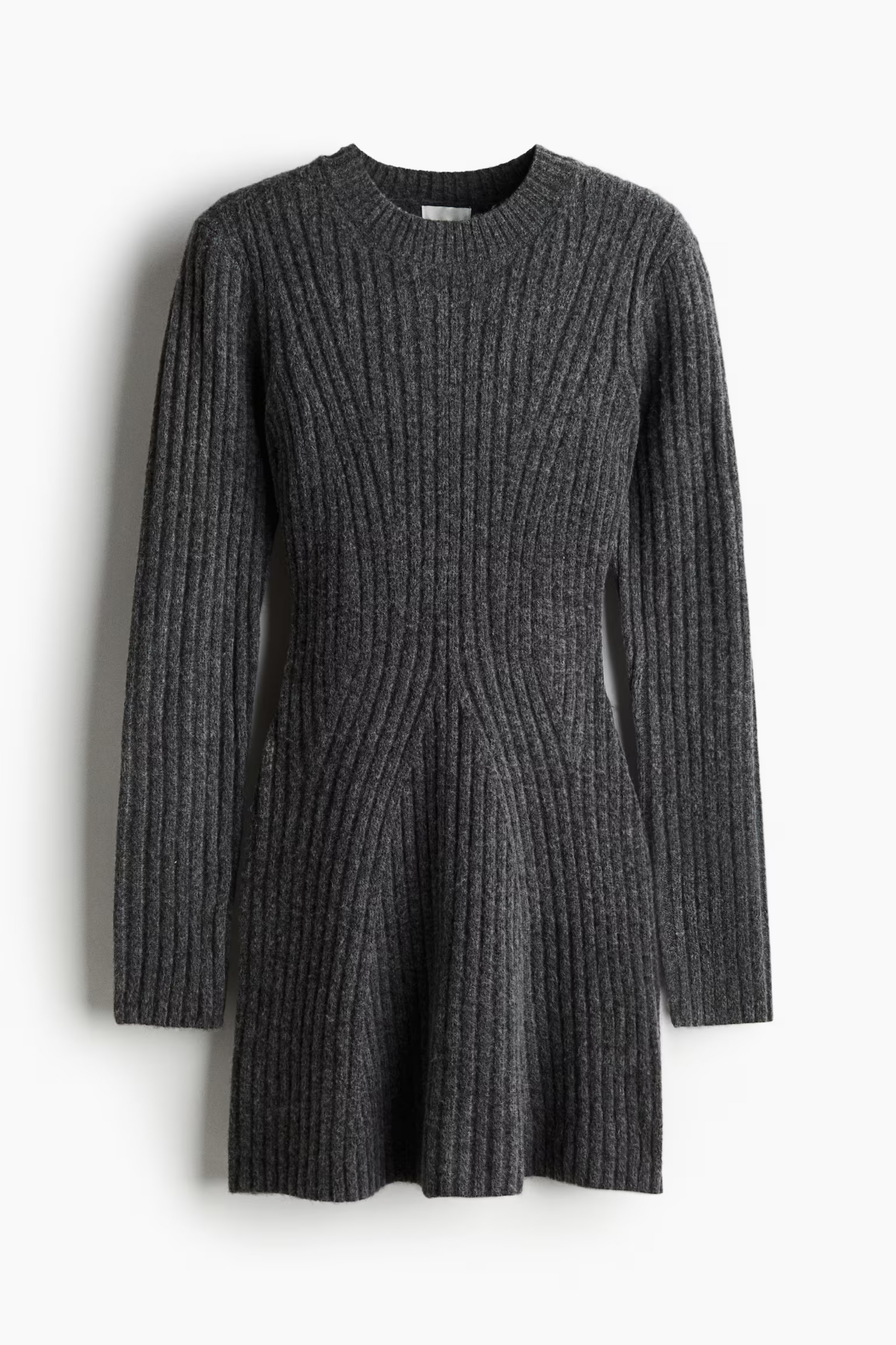 The Lira Ribbed Knit Dress is a cozy, fitted mini dress crafted from soft ribbed knit, featuring intricate detailing at the front and back. With a round neckline, slightly dropped shoulders, and long sleeves finished with flared cuffs and slits, this dress combines elegance with comfort. The subtly flared skirt adds an elegant drape, perfect for both casual and dressier occasions.