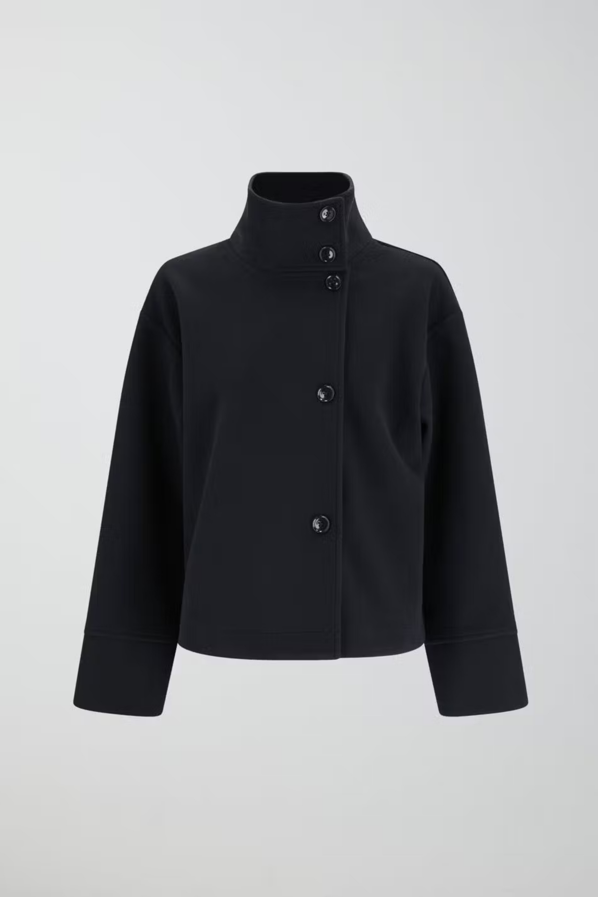 - Asymmetrical button closure for a sleek, distinctive style